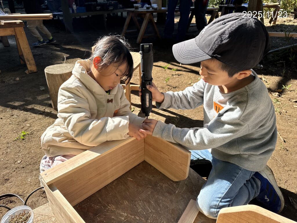 工具を使用したモノづくり、設計から取り組むため創造力を養える野外活動